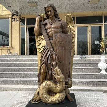 BLVE Life Size Brass Casting Religious Decoration Archangel Garden Statue Antique Copper Bronze St.Michael Statue